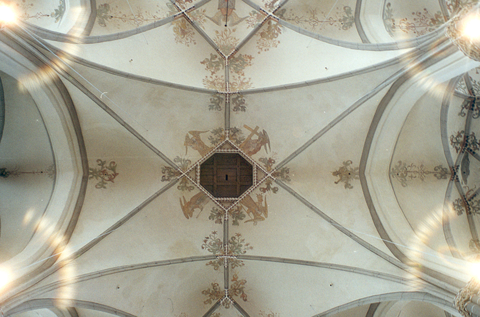 in Abschließend wurde der gesamte Innenraum farblich neu gefasst, die Gewölbemalereien ergänzt bzw. restauriert und Kapitelle, Dienste und Säulenbasen farblich aufeinander abgestimmt.