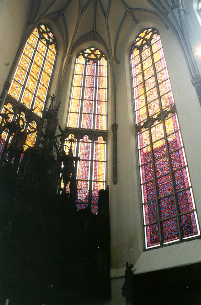 Der durchgeführte Künstlerwettbewerb unter drei Künstlern hatte als Sieger Karl Martin Hartmann. Um die künstlerische Verglasung zu schützen wurden die Fenster nach Außen hin mit „Goethe Glas“ in Abstimmung mit der Denkmalpflege verglast. Das gesamte Kirchengebäude einschl. aller Dachböden (Sakristei, Turmkapellen, Hauptdächer etc.) ist mit einer Brandmeldeanlage und einer zusätzlich im Turmschaft installierten Löschwassersteigleitung mit Wandhydranten für die Feuerwehr versehen; eingebaute Brandschutztüren zu den verschiedenen Dachböden sorgen zusätzlich für einen gehobenen Brandschutz, um nicht nur das unschätzbare Kunstgut, sondern auch das Gesamtmauerwerk St. Nikolai zu schützen.
