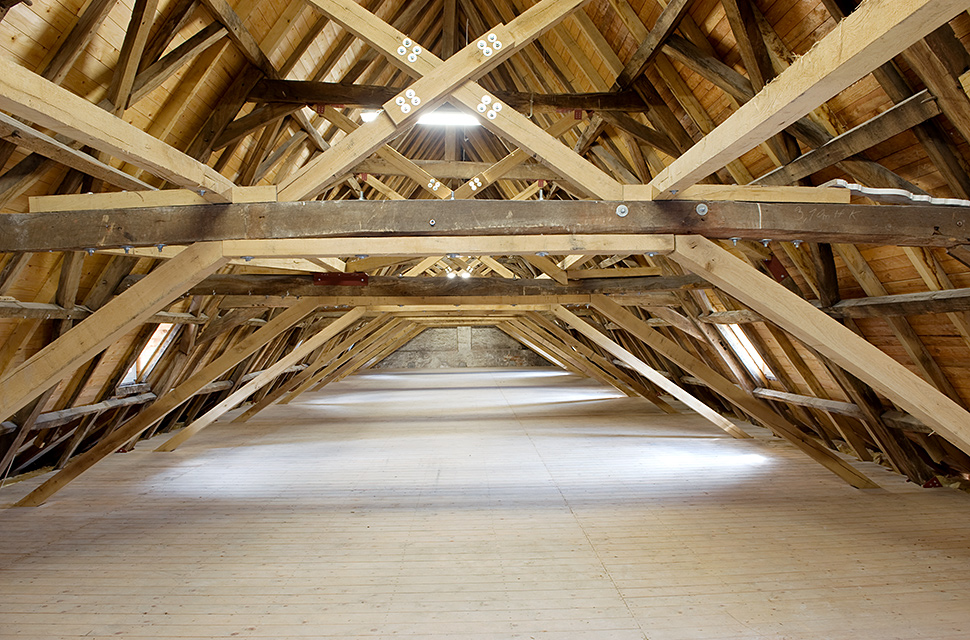 - Die Restaurierung und Ertüchtigung des historischen Dachstuhls und der Deckenebenen bedingt durch die Umnutzung durch das Geistlich und Kulturelle Zentrum zur Versammlungsstätte.
