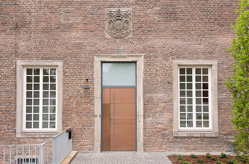 Unsere Aufgabe bestand darin die Dinge möglichst so zu belassen wie wir sie vorgefunden haben. Bei der Gesamtanlage des Klosters Kamp rechtfertigte die große Qualität des Bestandes die Vorraussetzung für ein belassen des jetzigen Zustandes. Altes bleibt alt, Neues ist neu, aber beide haben miteinander zu tun. Grundlage für die Umnutzung im Gewölbekeller bildete nicht die Suche nach einer ästhetischen Lösung, sondern die Entwicklung des Nutzungskonzeptes auf der Basis der bestehenden Raumstruktur und ihrer Abfolge.